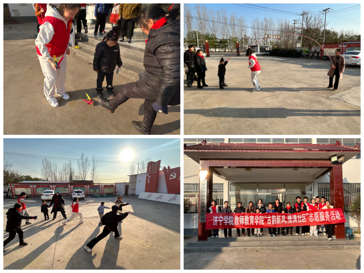 为传承弘扬中华优秀传统文化,志愿者们走进曲阜市陵城镇仓门村,他们以杨靖宇、王二小、马背上的小红军等红色故事为引,将波澜壮阔的历史画卷徐徐展开;踢毽子与跳绳的欢腾身影交错,邻里情谊在欢声笑语中蔓延生长;太极和九节鞭的展示研习现场中,传统养生项目仿若神秘的文化密码点燃了居民们对传统养生活动的热忱之火。