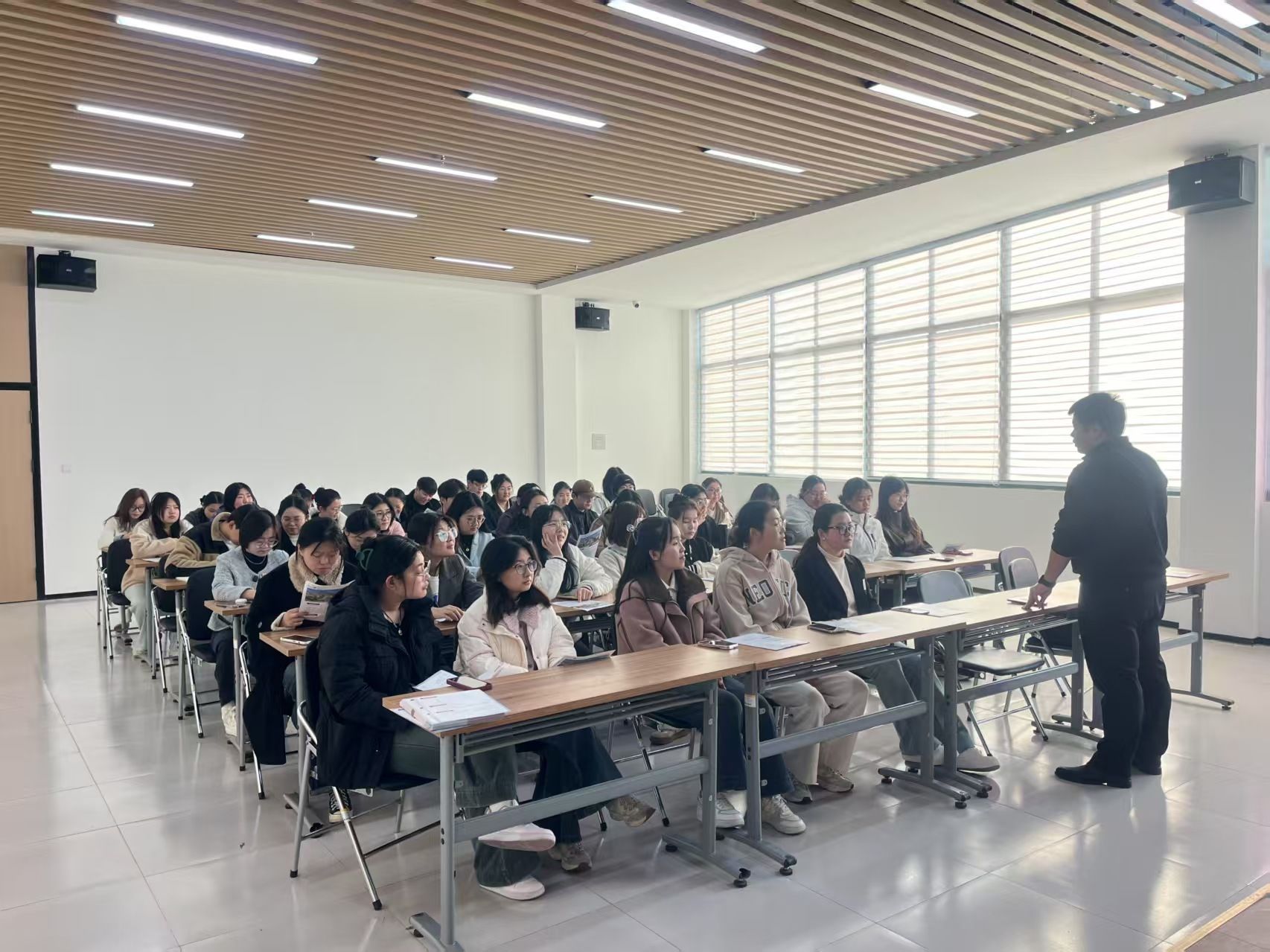 宣讲会邀请潍坊实验中学行政中心主任黄江生、人力资源专员傅祥君为大家宣讲。黄江生就潍坊实验中学的发展历程、发展前景、用人需求及福利待遇等方面进行了详细讲解,让同学们对岗位有更直观的了解。他表示,将积极为我院学子提供更多优质的实习与就业岗位,期待同学们能够加入学校,在实践中积累经验,不断成长。傅祥君还结合当前就业形势,针对同学们普遍关心的就业问题进行了耐心细致地解答,为同学们的职业规划和求职应聘提供了宝贵的建议。