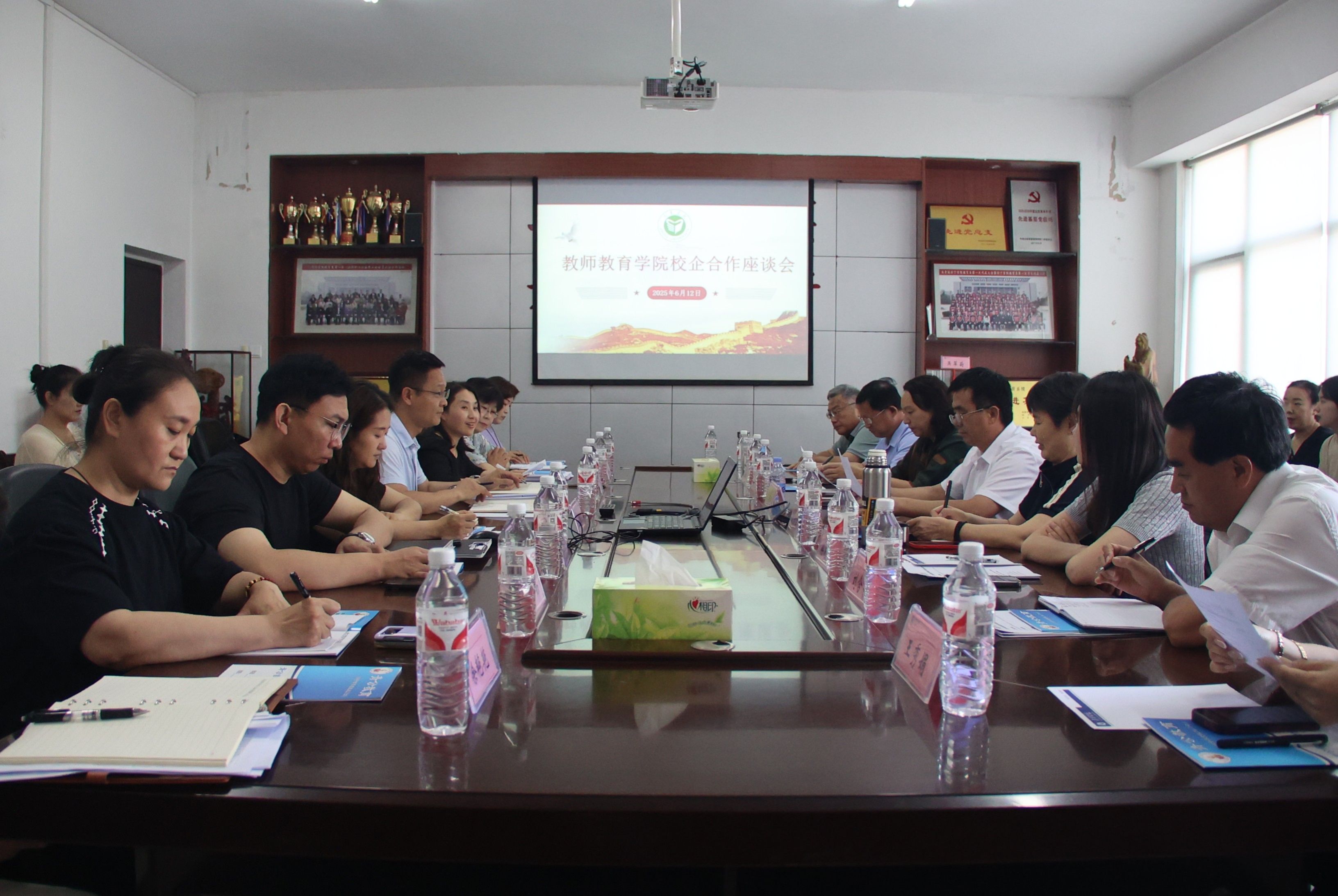 为落实2025届高校毕业生就业“百日冲刺”行动的要求,加强校企合作,拓宽毕业生就业渠道,6月12日,365英国上市(集团)公司在会议室举办校企合作座谈会。会议特别邀请到青公教育集团主任季东华、济宁九巨龙萌夫子幼教集团总园长徐衍瑛、汶上县实验幼儿园总园长刘含芹等11位幼教集团投资人和负责人。学院院长曹光海、副书记杜鹃、副院长贾英侠,毕业班辅导员、学前教育系专业教师参加。座谈会由副院长贾英侠主持。
