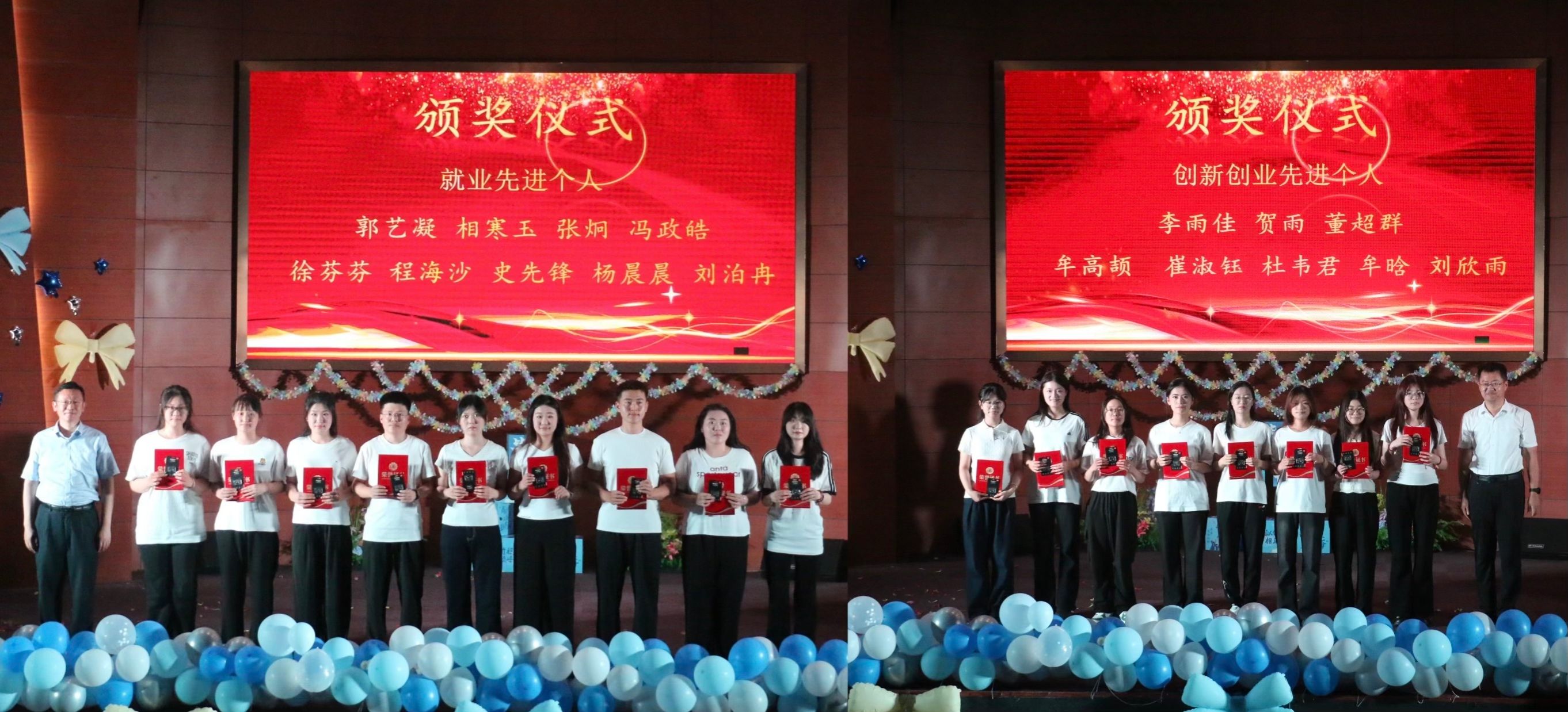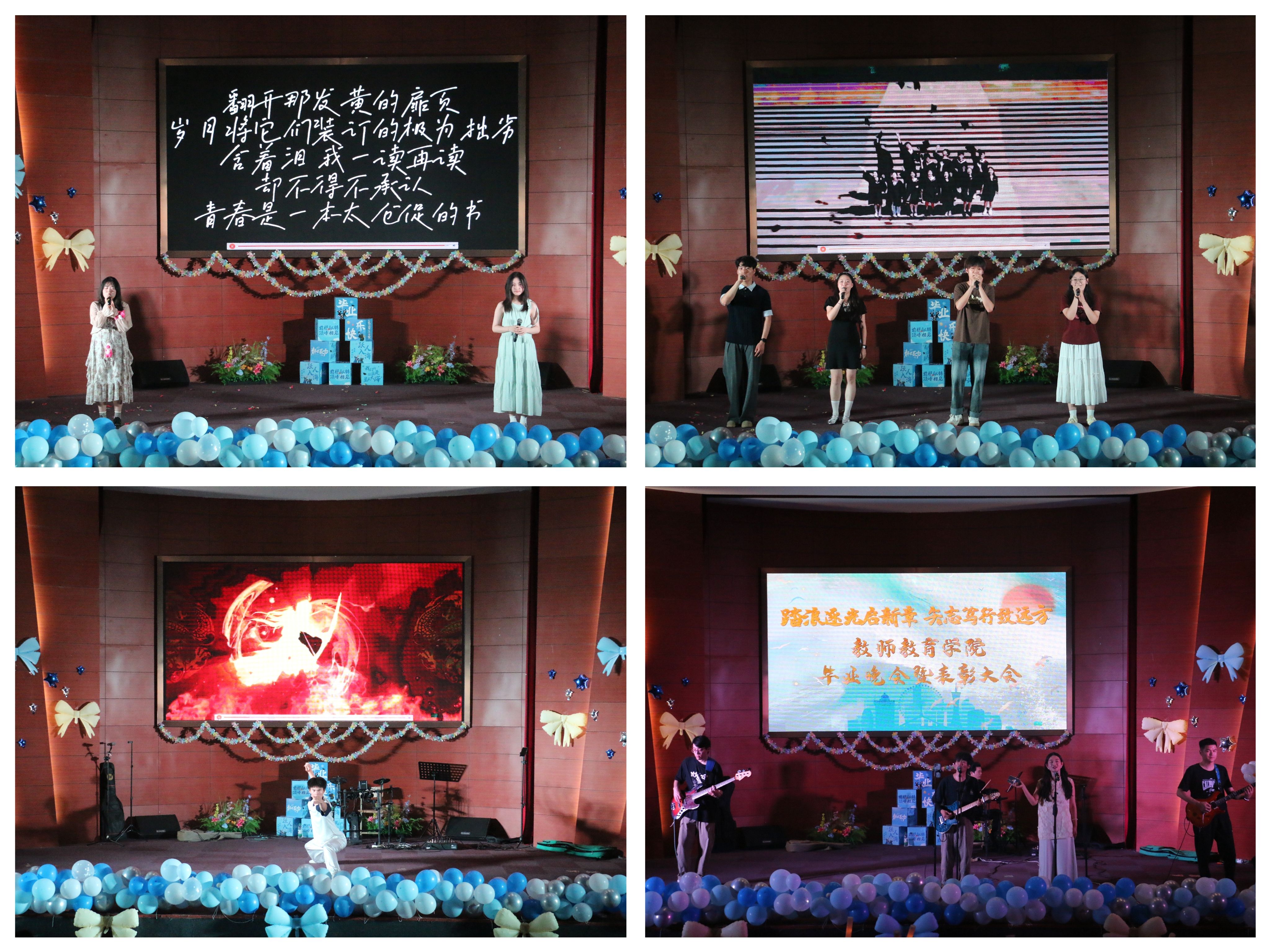 晚会现场,学院对优秀学习标兵、就业先进个人、创新创业先进个人进行了表彰,勉励毕业生坚定信念,勇敢奔赴人生新阶段。毕业晚会在大合唱《凤凰花开的路口》中圆满落幕。