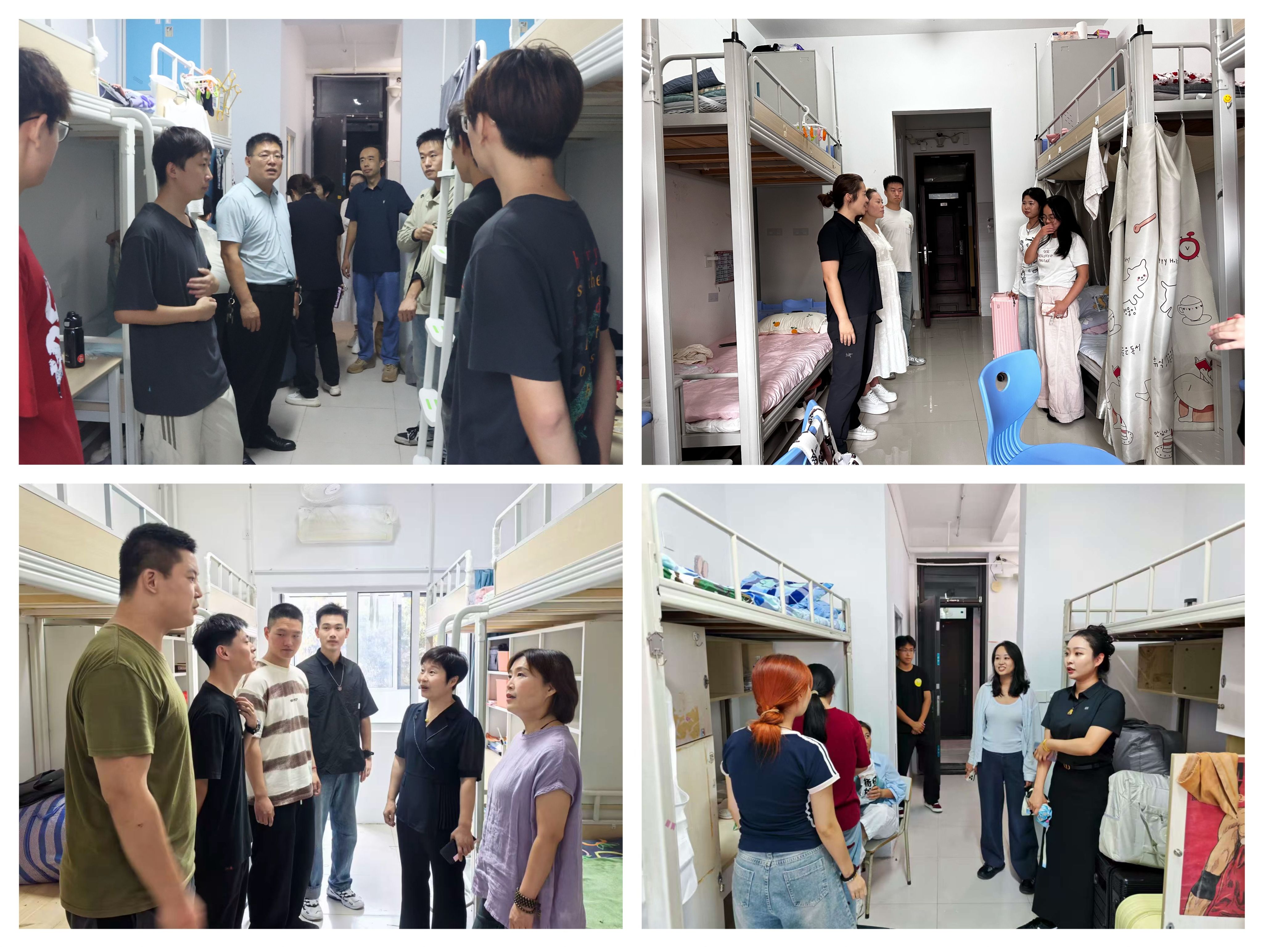 学院领导班子、辅导员分组深入新生宿舍,与同学们亲切交流,细致了解他们的家乡背景、入住适应情况及初步规划,并鼓励大家积极融入集体、珍惜大学时光。老师们还特别嘱咐安全注意事项,细致入微的关怀让新生倍感踏实。