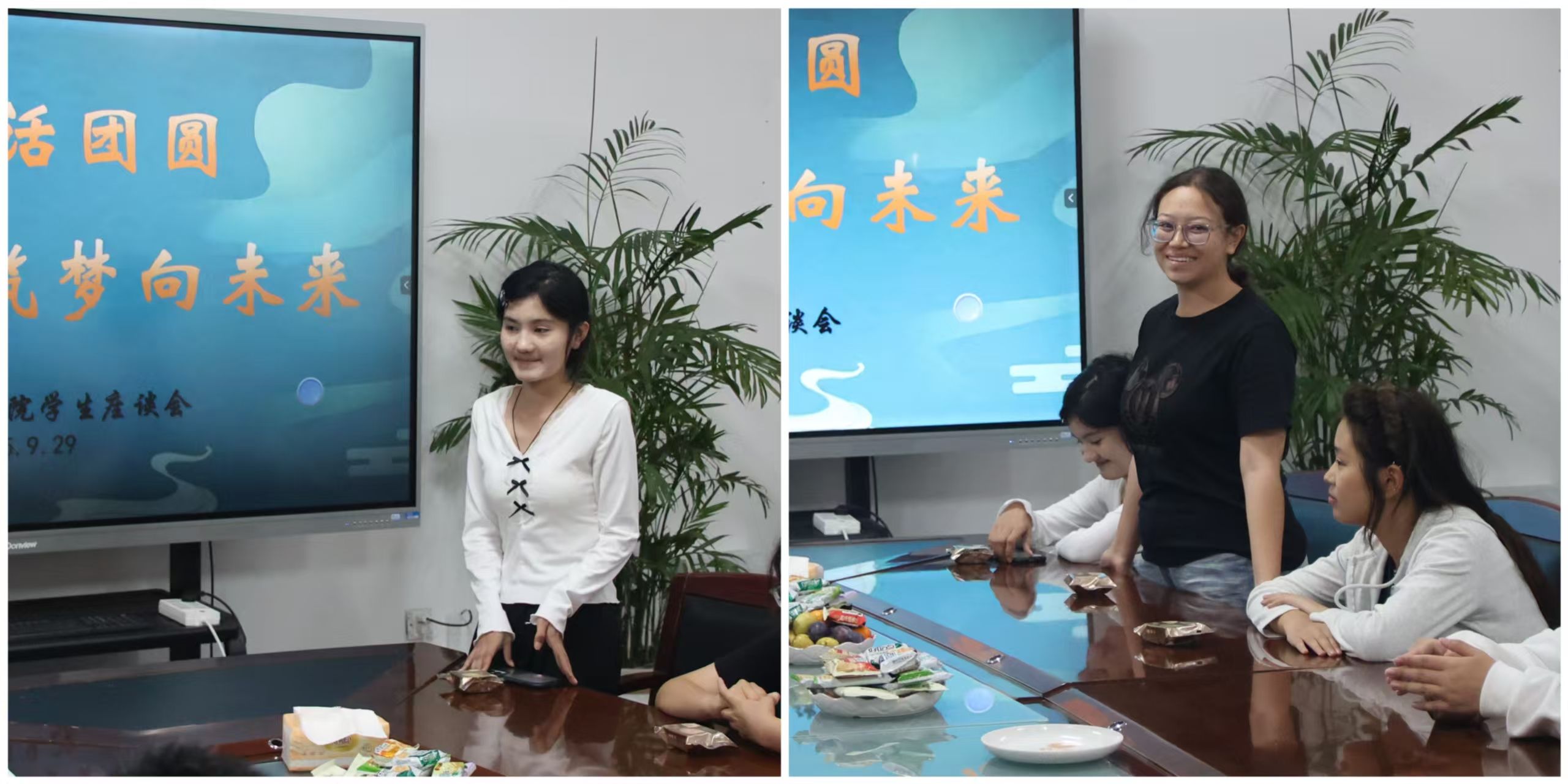 在学生发言环节,来自全国各地的学子踊跃交流,真诚分享个人情况与家乡风情,畅谈入学以来的学习生活点滴,也坦诚交流了在语言、饮食等方面遇到的适应挑战,现场气氛温馨而热烈。