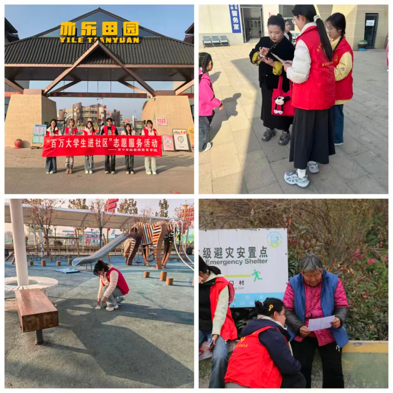12月7日,团队前往曲阜亦乐田园开展志愿服务。志愿者们躬身实践,为游客提供咨询引导,并运用专业所学开展幼儿看护与安全保障工作,以真诚服务传递温暖。此次活动促进了专业知识与社会实践的有机结合,用实际行动为乡村振兴贡献力量。