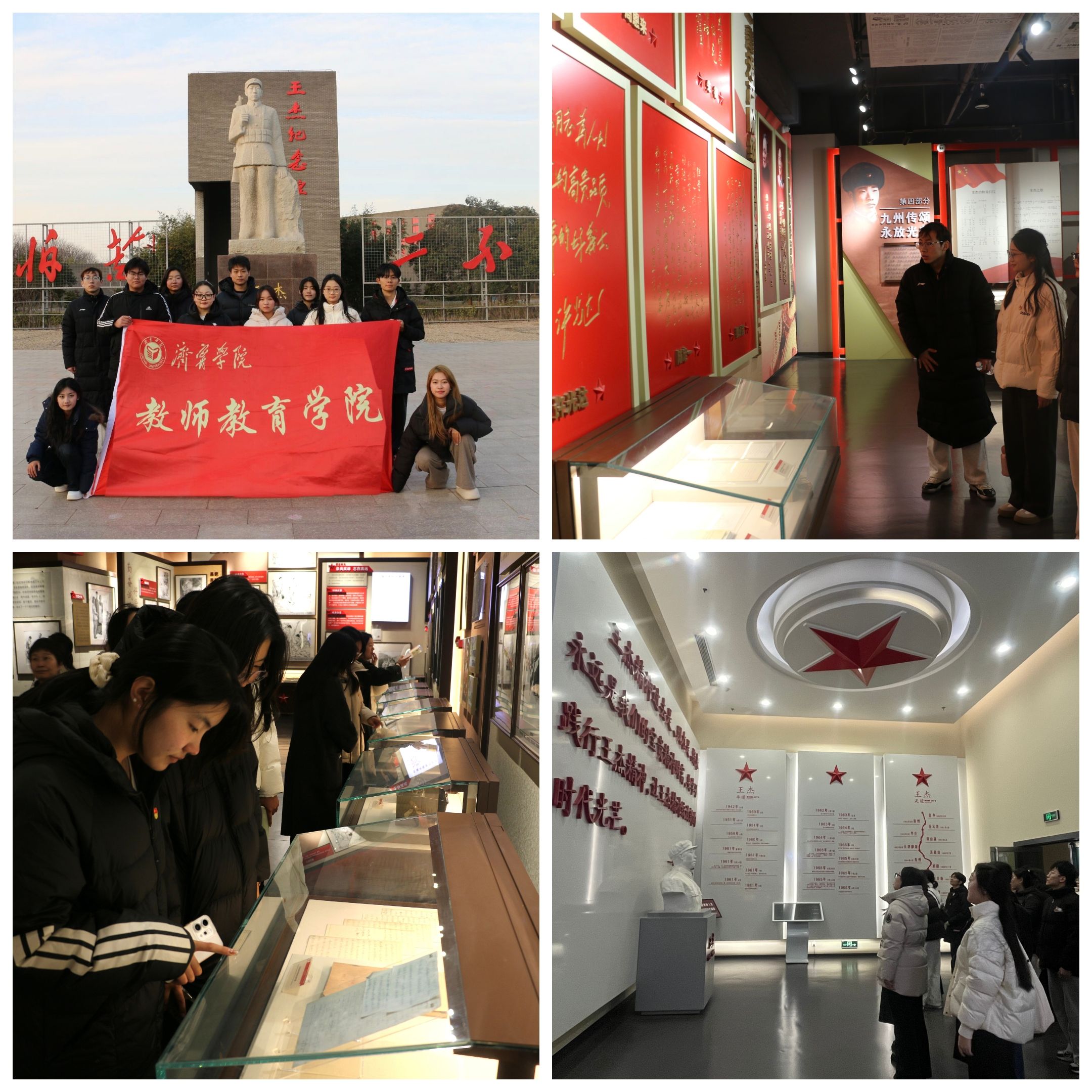 12月11日,“济韵青禾”志愿服务队前往王杰纪念馆,开展“赓续红色血脉,践行服务宗旨”红色主题社会实践活动。队员们通过参观陈列、聆听讲解、小组研讨等形式,深入学习王杰同志“一不怕苦、二不怕死”的革命精神与崇高品格。活动引导志愿者深刻理解红色基因与志愿精神的内在联系,进一步筑牢服务人民、奉献社会的思想根基。